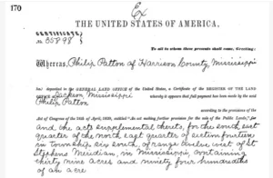 Philip Patton (Harrison Co, MS) patent no.35898; U.S. Bureau of Land